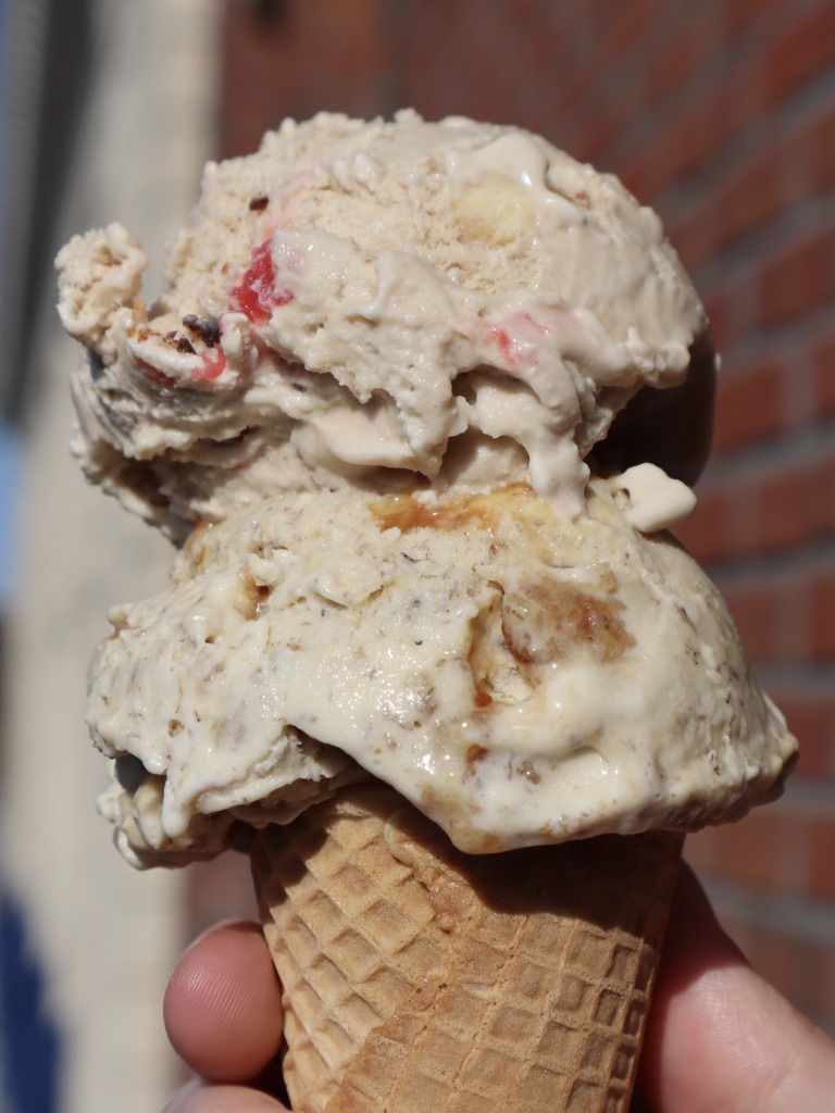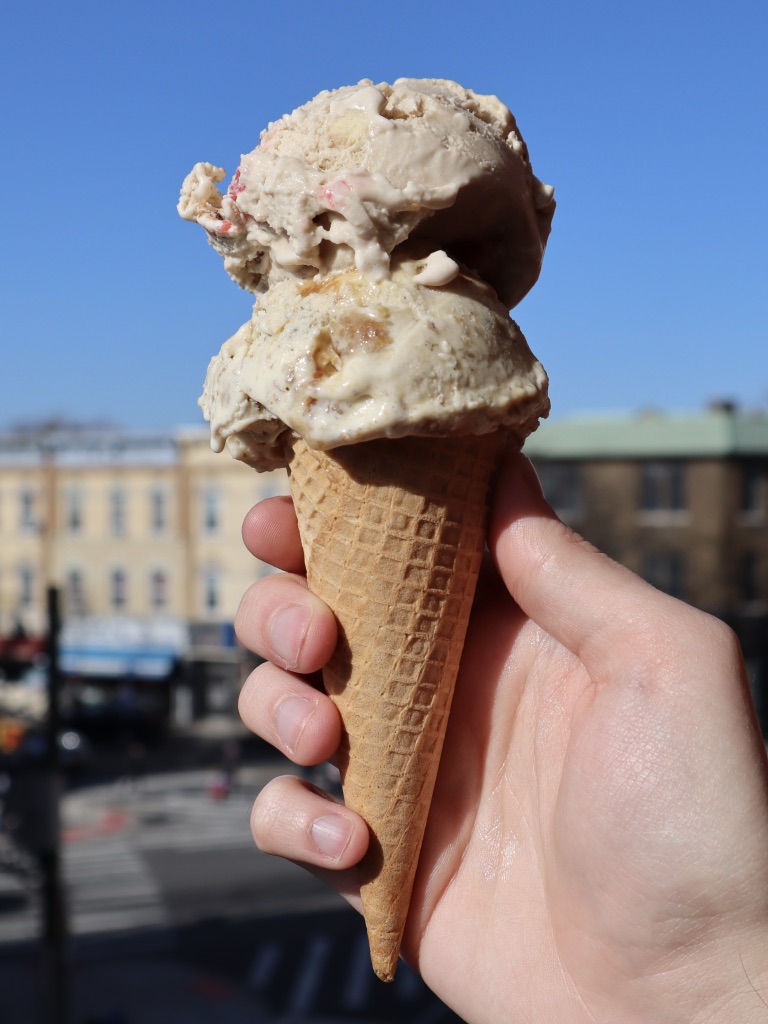 The Banana Miso Caramel is totally bananas. (Get it? It’s a joke!) Because it has fresh fruit, it tastes quite a bit like banana bread, but the savoriness of the miso caramel adds another layer of flavor that really brings everything together. The Earl Grey Strawberry Cheesecake is something I’d recommend to anyone who likes tea-flavored desserts—the earl grey pairs really well with the bites of cheesecake and strawberries mixed in. Debbie and Liz said this flavor is inspired by the cheese foam strawberry tea from Debutea, and I totally see it (and anyone who has gotten that drink on their way to Bobst Library will see it too). I loved both of the flavors I ordered, but I would have to say that the Earl Grey takes the (cheese)cake for me.