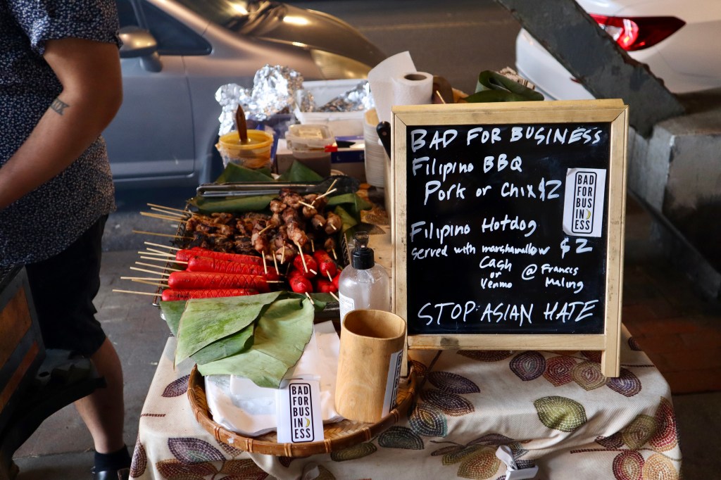 While BBQ is Francis’ main offering nowadays, he consistently creates new menus for his pop-ups. “I want to keep pushing myself creatively,” he said. “A lot of people might expect some dishes from me, but changing the menu means I’m pushing myself and cooking for myself.” And likewise, BFB was created by Francis for himself. He BBQs on days that he wants to and he participates in pop-ups and special events that feed his creativity and have meaning. In fact, he started BBQing in Woodside soon after the capitol riots in January because he felt that “if they can get away with that crime, I can get away with BBQ on the street.” Francis also has a sign that reads “Love our people like you love our food” displayed during his pop-ups, due to the rise in violence against Asian Americans during the pandemic. Bad For Business isn’t just a food concept, but a food concept that is truly based on the chef and his convictions.