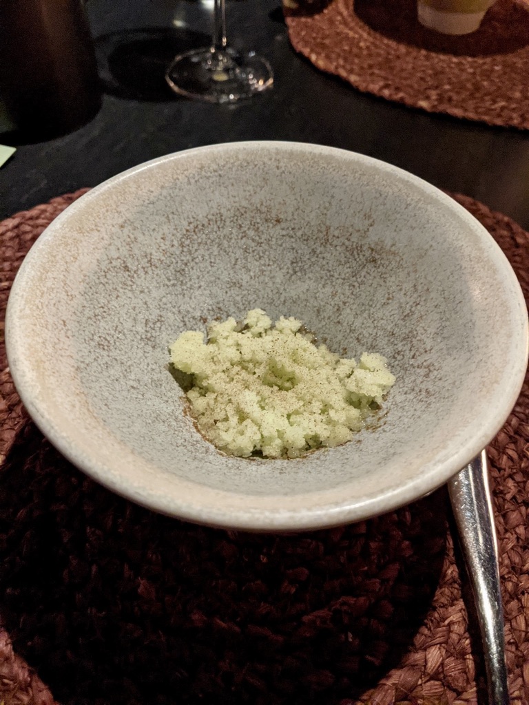 The meal started off with a round of snacks, followed by some bread with spruce butter. The little snacks are a great opener—I enjoyed everything, but there was something really special about the sweet and savory onion cake topped with pickled carrots. The bread at Dill is also very good, crisp on the outside and aromatic.