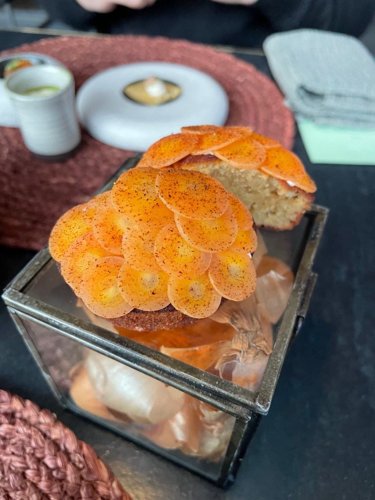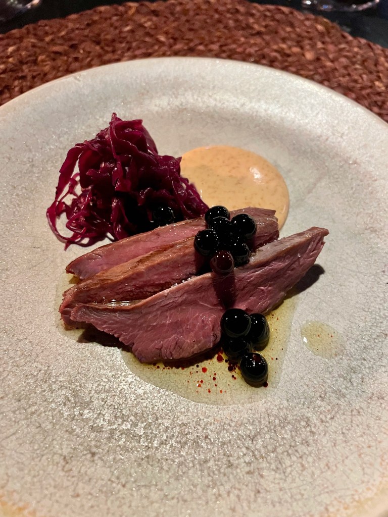The second dish featuring goose was also creative and well-balanced. The rich goose breast was paired with acidic components like berries and briney cabbage, but the most fun part was how they turned rye bread—an Icelandic staple—into a nutty, smooth sauce. Eating this dish, you might not even think you’re having poultry because the meat is rich and dense.