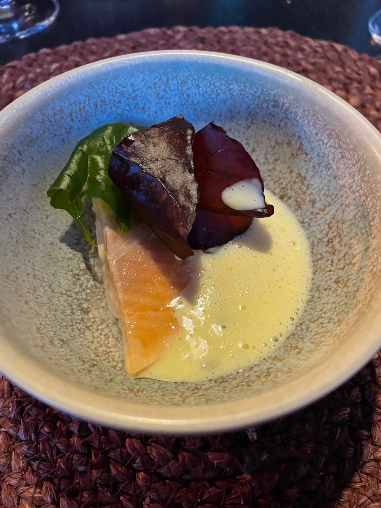 Following the vegetable course were two dishes featuring arctic char, one with raw char and one with smoked char. The raw char had Nordic wasabi as one of the prominent ingredients, and the cool thing about this wasabi is that while the vegetable is native to Japan, it’s grown in Iceland by a startup. In my opinion, incorporating Nordic wasabi into the menu shows just how hyper-local Dill’s ingredients are. The smoked char was also smokey and melt-in-your-mouth delicious.
