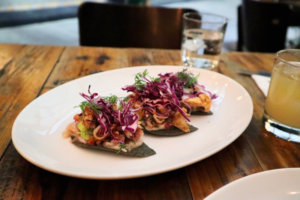 Between my partner and I, I’m definitely the planner when it comes to vacations and choosing where to eat. But this was his pick (and a damn good one)! Amaya is best known for being a good spot to enjoy a bottle of wine, however the food here is equally great. The menu features shareable plates with both Mexican and international influence, and the food is meant to pair well with the wine. While I opted for outdoor dining due to the nice weather, the inside of the restaurant is really pretty and has a colorful painted brick wall.