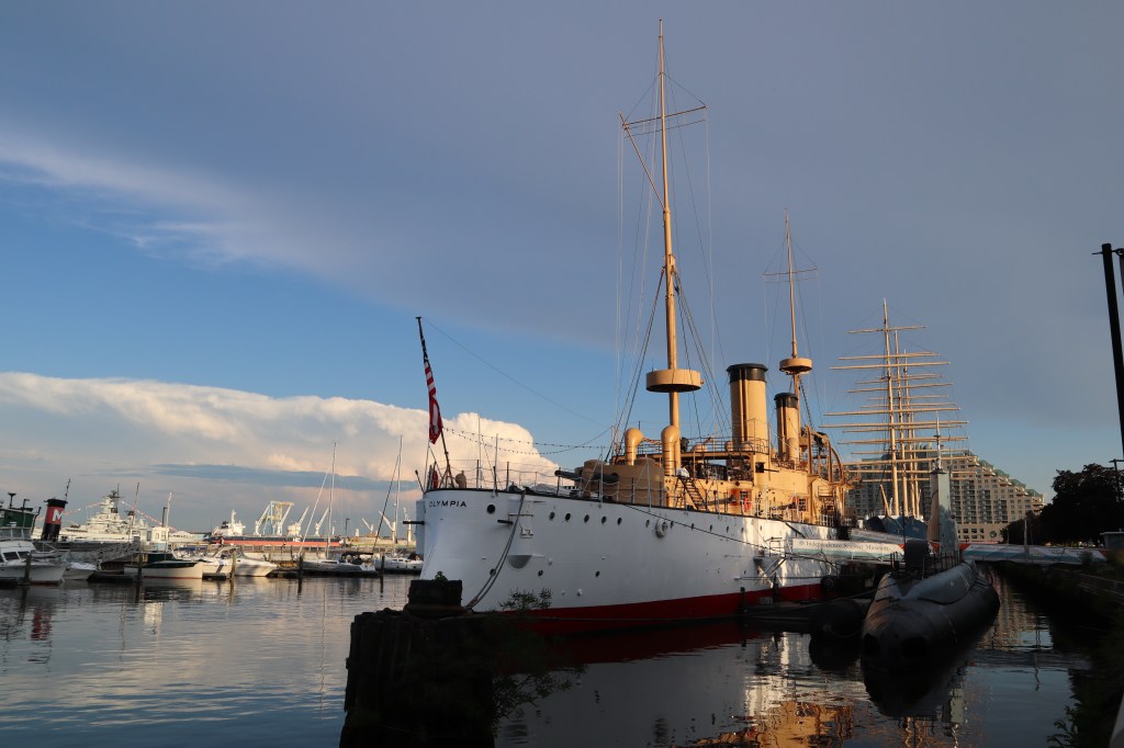 Though it’s popular during the day, Spruce Street Harbor really shines in the evening. Despite being located on the east side of Philadelphia, the view across the Delaware River is beautiful at sunset. The harbor is a great spot to take photos with ships or the Franklin Bridge in the background as the orange sunlight hits everything just right.