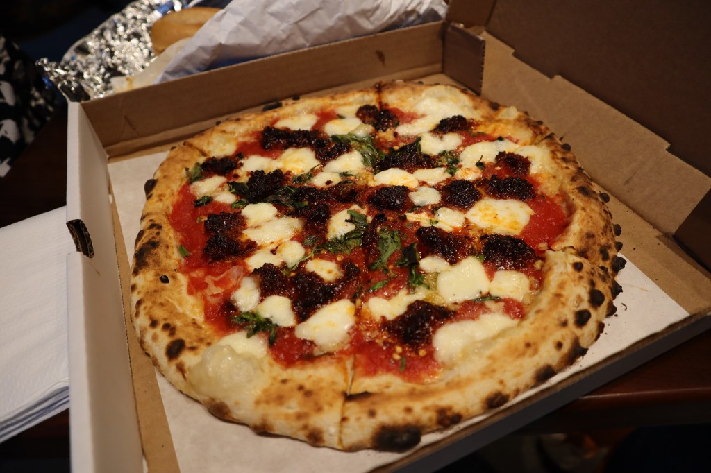 Now this is a hidden gem! I originally ordered from Nomad Pizza because I was at a BYOF cidery across the street, and I ended up loving the pizza far more than expected. They bake absolutely perfect wood-fired sourdough pizzas, like this one with nduja and honey. Pizzas are ready in under 20 minutes and are perfect to have with some beer or crush on their own. You definitely want to take a pie back to your hotel room for some late night snacking!