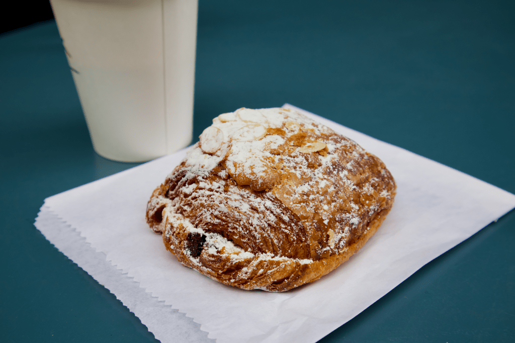 I started off my day at Colson Patisserie, where I got an Almond Pain au Chocolat and a cortado. Colson Patisserie specializes in French and Belgian pastries, and they do a lot of wholesale around the city so I’ve had one of their croissants before. I would say based on what I’ve tried, the pastries are much, much better at the source even though they’re all baked from the same kitchen—the Almond Pain au Chocolat was very flakey, crispy, and had a decent amount of filling and almond topping. The coffee is on the slightly sweeter side even though I didn’t add any sugar, but it was very smooth. I don’t often go for sweet breakfast over savory, but this was a great start to the morning. I took a Salesforce user group call while chowing down; the bread and coffee went well with learning about project management.