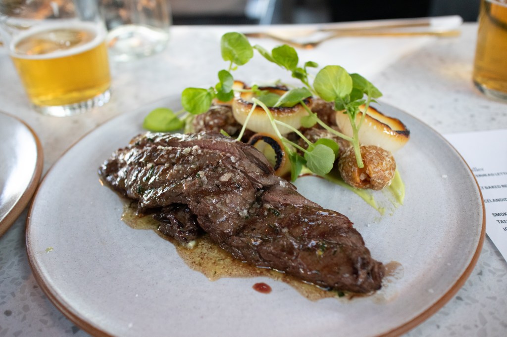 For our last meal in Reykjavík, we headed to Skál! The exclamation point is part of their name of course, and “skál” is the equivalent of “cheers” when drinking. Skál! is located in Hlemmur Mathöll, Reykjavík’s first food hall on the site of an old bus station. They have some seasonal menu items and some mainstays. I had a beautiful raw scallop dish with horseradish cream, basil and hazelnut oils, and red currant granita. If I had to pick one favorite dish of this stopover, the scallops would be it—the flavors were very exciting and I just love raw scallops. My partner and I also split an arctic char dish and a skirt steak plate, both of which were as good as the last time we went to Skál!